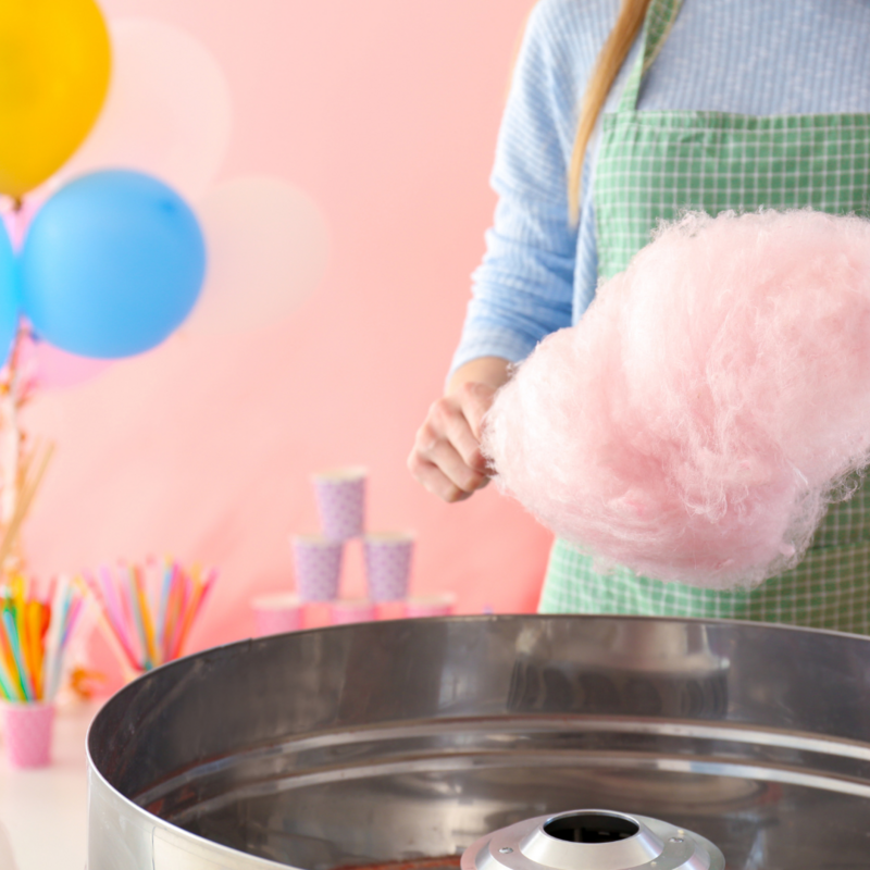 Our Cotton Candy Cart rental is also a perfect way to charm your guests. It holds 24 pre-made cotton candy cones.